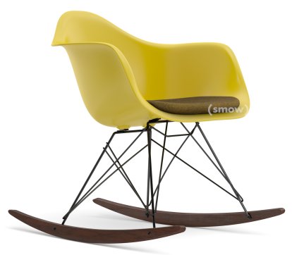 Eames Plastic Armchair RE RAR mit Polsterung, Senf, Mit Sitzpolster, Senf / dunkelgrau, Ohne Keder, Basic Dark/Ahorn dunkel