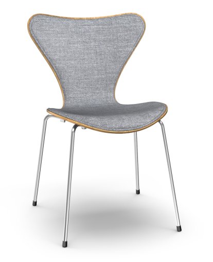 Serie 7 Stuhl 3107 mit Frontpolster, Holz klar lackiert, Eiche natur, Remix 143 - Grau, Chrome