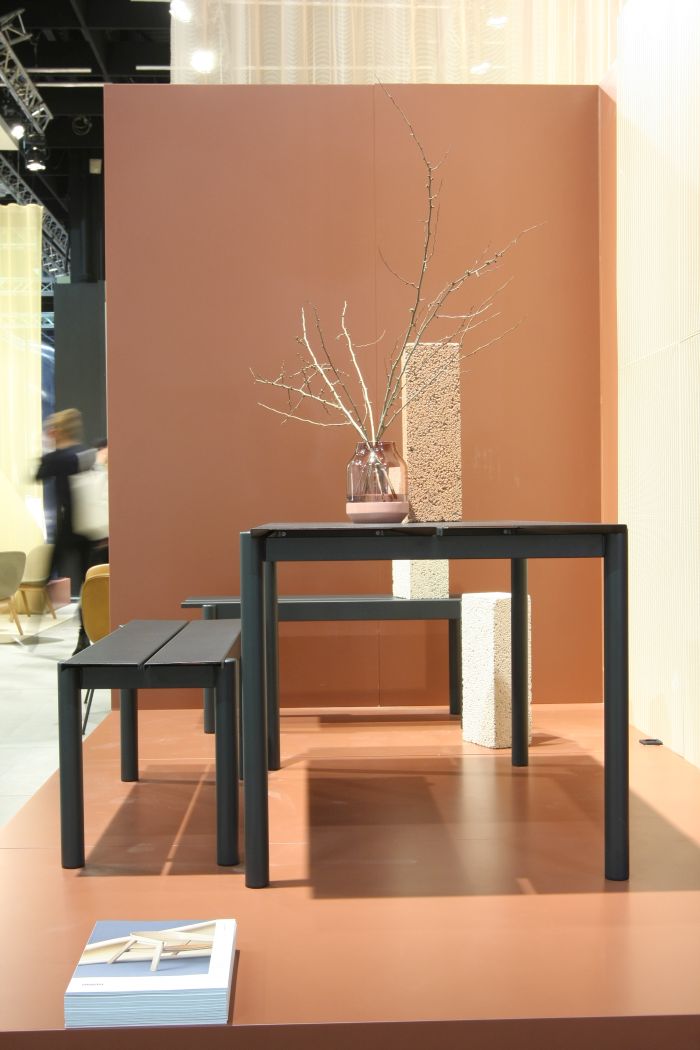Die von Thomas Bentzen entworfene Kollektion Linear Steel wird ihrem Namen gerecht: Sie ist linear, aus Stahl gefertigt und zudem angenehm und sofort zugänglich. Die Möbel der Serie wirken leicht vertraut, ihre Form ist funktional und optisch gut durchdacht, und so besitzt die Muuto Kollektion eine visuelle Leichtigkeit, die ihrer physikalischen Masse widerspricht. Man möchte wirklich nicht mit den Zehen dagegen schlagen. Was allerdings nicht heißt, dass sich die Bänke nicht problemlos von einer Person verschieben lassen. Um sie über weitere Strecken zu tragen, bedarf es allerdings mehr als einer Person, was natürlich umso besser ist, fördert es doch letztlich die soziale Interaktion.
