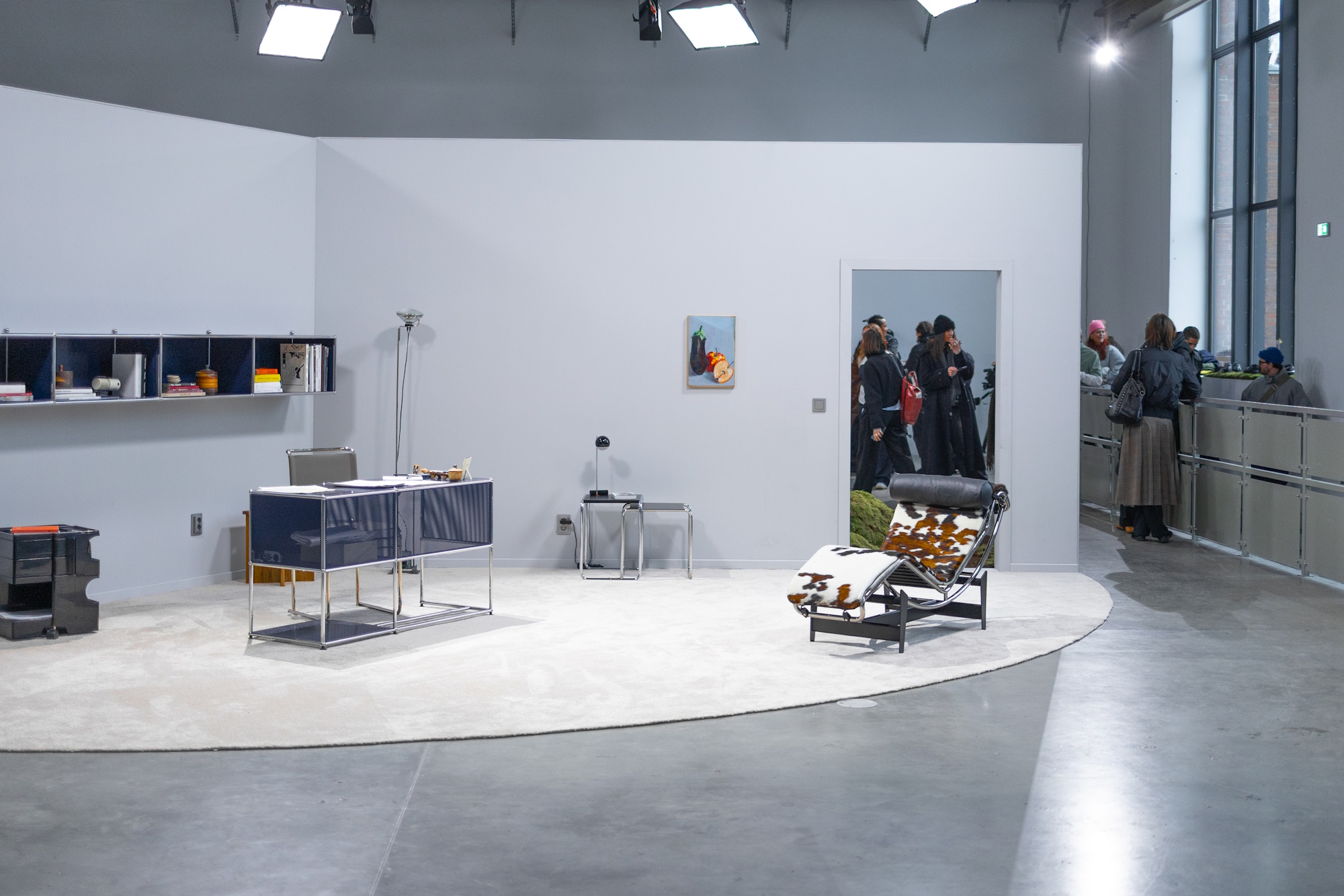 Das Konzept war einfach und gleichzeitig außergewöhnlich: eine zehn Meter lange, kreisförmige Insel verband in ihrem sogenannten Schaffensraum Werkstatt, Büro/Wohnraum und Natur. Möbel bestimmten die Bewegung, schufen Halt, öffneten Räume für Begegnungen. Mode und Möbel spielten miteinander.