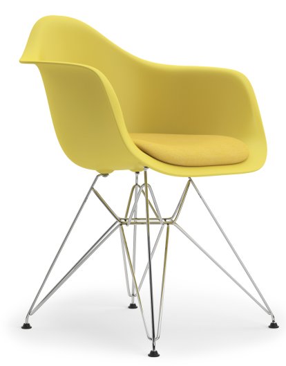 Eames Plastic Armchair RE DAR Citron|Mit Sitzpolster|Yellow / elfenbein|Standardhöhe - 43 cm|Verchromt