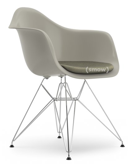 Eames Plastic Armchair RE DAR Kieselstein|Mit Sitzpolster|Warmgrey / elfenbein|Standardhöhe - 43 cm|Verchromt