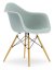 Eames Plastic Armchair DAW Eisgrau|Mit Vollpolsterung|Eisblau / elfenbein|Standardhöhe - 43 cm|Ahorn gelblich