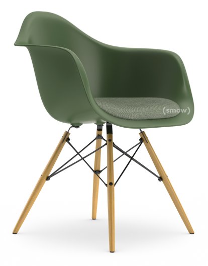 Eames Plastic Armchair RE DAW, Forest, Mit Sitzpolster, Elfenbein / forest, Standardhöhe - 43 cm, Esche honigfarben