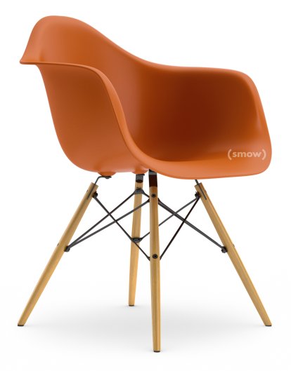 Eames Plastic Armchair RE DAW, Rostorange, Ohne Polsterung, Ohne Polsterung, Standardhöhe - 43 cm, Esche honigfarben