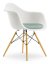 Eames Plastic Armchair DAW Weiß non-RE|Mit Sitzpolster|Eisblau / elfenbein|Standardhöhe - 43 cm|Ahorn gelblich