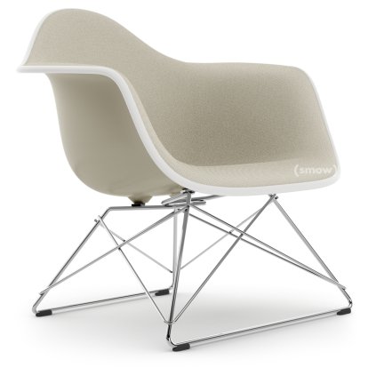 Eames Plastic Armchair RE LAR, Kieselstein, Vollpolsterung warmgrey / elfenbein, Verchromt