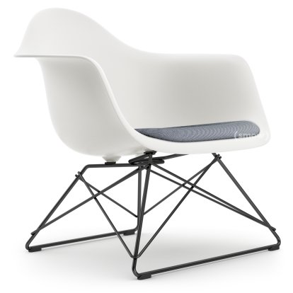 Eames Plastic Armchair RE LAR, Weiß non-RE, Sitzpolster dunkelblau / elfenbein, Beschichtet basic dark