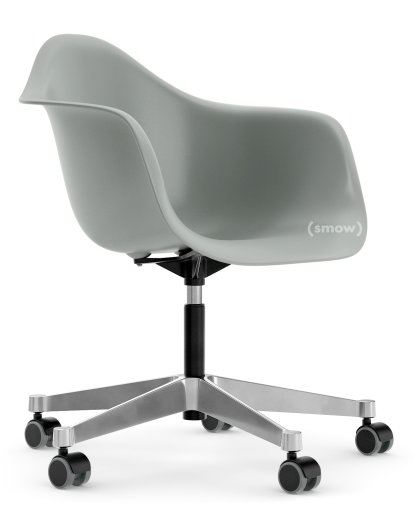 Mit dem Vitra Home-Office-Stuhl PACC kommt ein Eames Klassiker an den Schreibtisch. Charles und Ray Eames entwarfen die Plastic Chairs als eine Serie, die Stühle für verschiedene Verwendungsmöglichkeiten bietet - so mit 5-Sternfuß aus Aluminium-Druckguss und Rollen als stylisher Drehstuhl für den heimischen Schreibtisch. Seit 2024 fertigt Vitra die Sitzschalen der Eames Plastic Chairs aus ressourcenschonendem Recyclingmaterial.