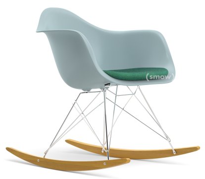 Eames Plastic Armchair RE RAR mit Polsterung, Eisgrau, Mit Sitzpolster, Mint / forest, Ohne Keder, Verchromt/Ahorn gelblich