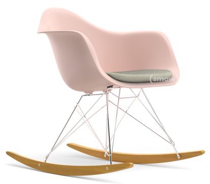Eames Plastic Armchair RE RAR mit Polsterung, Zartrosé, Mit Sitzpolster, Warmgrey / elfenbein, Ohne Keder, Verchromt/Ahorn gelblich