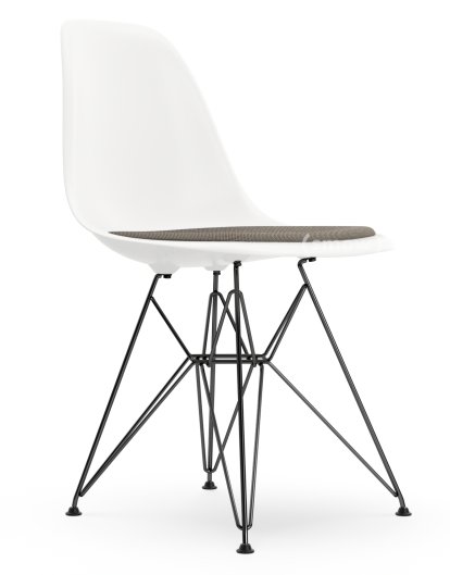 Eames Plastic Side Chair RE DSR Weiß non-RE|Mit Sitzpolster|Warmgrey / moorbraun|Standardhöhe - 43 cm|Beschichtet basic dark