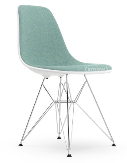 Eames Plastic Side Chair RE DSR Weiß non-RE|Mit Vollpolsterung|Eisblau / elfenbein|Standardhöhe - 43 cm|Verchromt