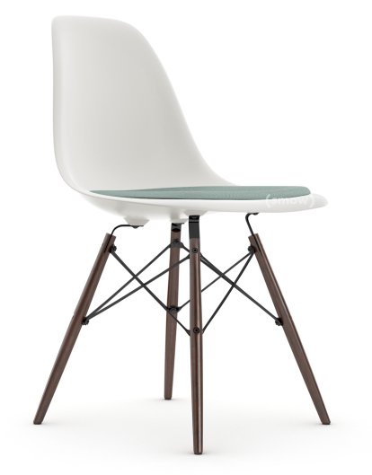 Eames Plastic Side Chair RE DSW Weiß non-RE|Mit Sitzpolster|Eisblau / elfenbein|Standardhöhe - 43 cm|Ahorn dunkel