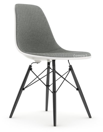 Eames Plastic Side Chair RE DSW Weiß non-RE|Mit Vollpolsterung|Nero / elfenbein|Standardhöhe - 43 cm|Ahorn schwarz