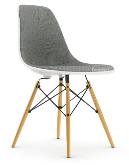 Eames Plastic Side Chair RE DSW Weiß non-RE|Mit Vollpolsterung|Nero / elfenbein|Standardhöhe - 43 cm|Esche honigfarben
