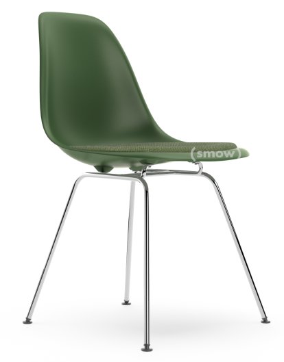 Eames Plastic Side Chair RE DSX, Forest, Mit Sitzpolster, Elfenbein / forest, Standardhöhe - 43 cm, Verchromt