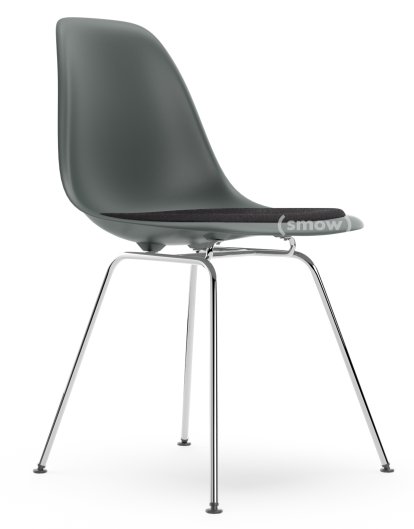 Eames Plastic Side Chair RE DSX, Granitgrau, Mit Sitzpolster, Dunkelgrau, Standardhöhe - 43 cm, Verchromt