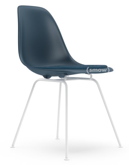 Eames Plastic Side Chair RE DSX Meerblau|Mit Sitzpolster|Meerblau / dunkelgrau|Standardhöhe - 43 cm|Beschichtet weiß