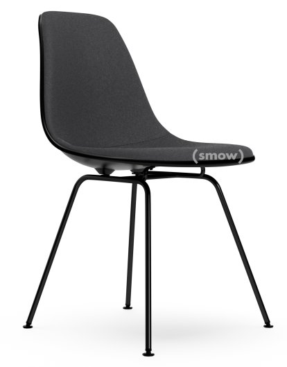 Eames Plastic Side Chair RE DSX Tiefschwarz|Mit Vollpolsterung|Dunkelgrau|Standardhöhe - 43 cm|Beschichtet basic dark