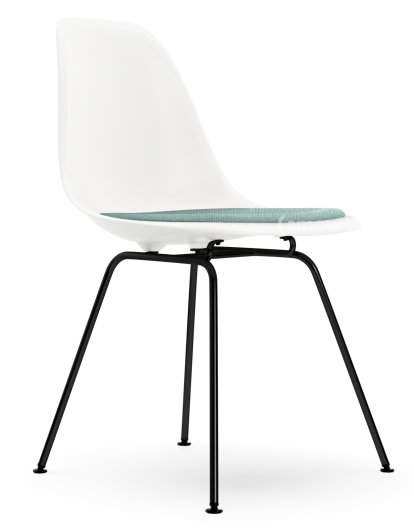 Eames Plastic Side Chair RE DSX Weiß non-RE|Mit Sitzpolster|Eisblau / elfenbein|Standardhöhe - 43 cm|Beschichtet basic dark