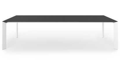 Nori Esstisch, Fenix schwarz mit schwarzer Kante, L 209-303 x B 100 cm, Aluminium weiß lackiert