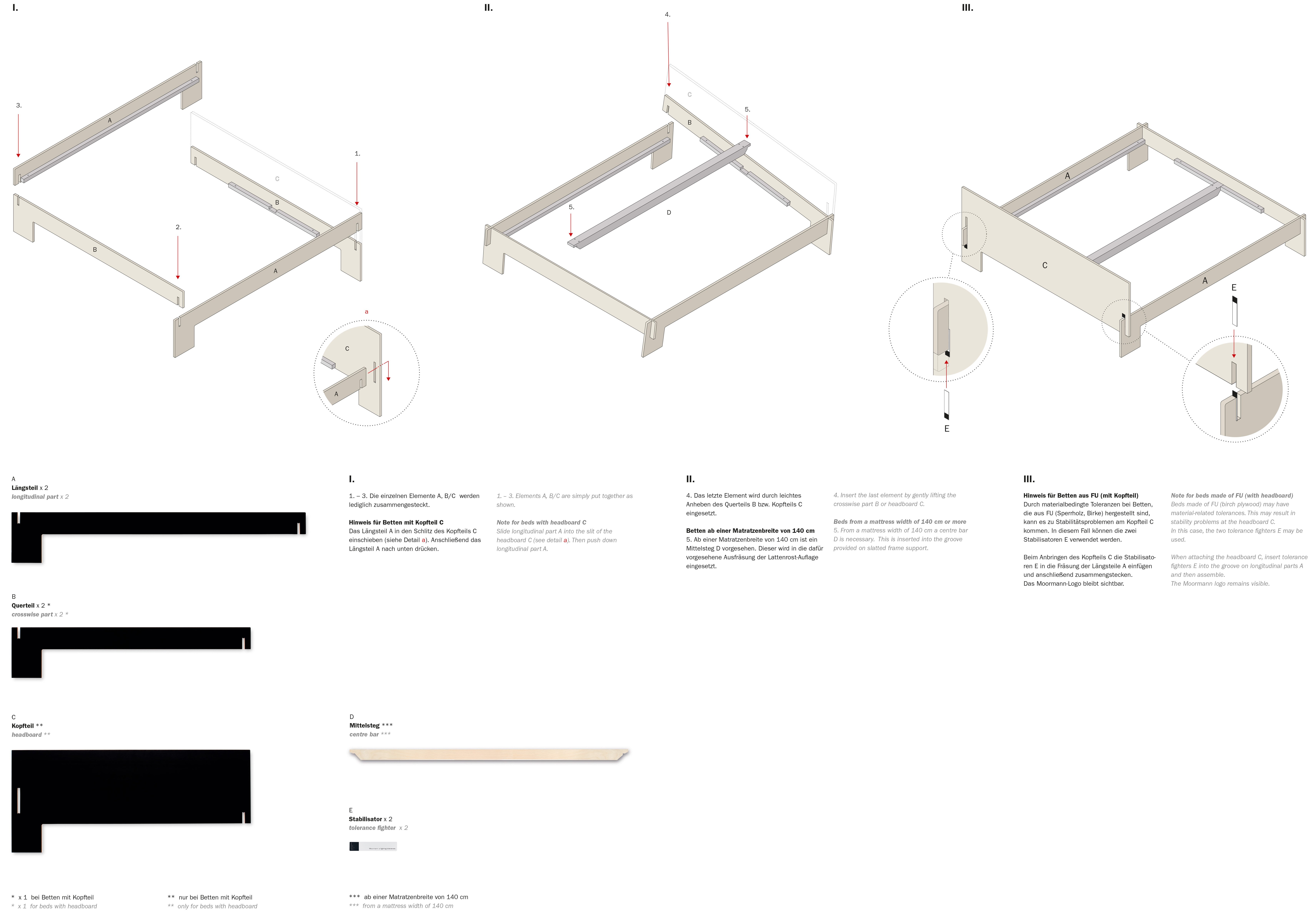 ...Das Bett "Siebenschläfer" von Möbelhersteller Moormann (Design: Christoffer Martens, 2007) zeichnet sich durch einen kinderleichten Aufbau aus... Die einzelnen Rahmenteile müssen nur ineinander geschoben werden und schon ist der "Siebenschläfer" fertig...