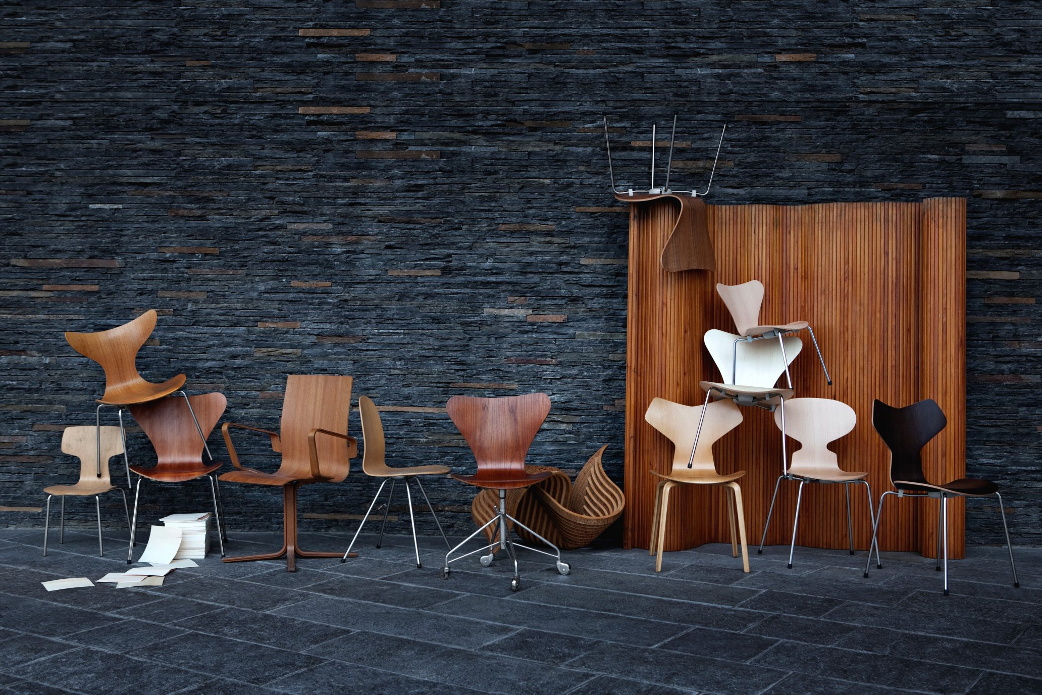 Unter den vielen Möbeldesigns, die Republic of Fritz Hansen seit der Firmengründung im Jahre 1872 lancierte, erlangten jene von Arne Jacobsen besondere Popularität. Die Kooperation Fritz Hansens mit dem dänischen Designer begann 1934, erfuhr jedoch erst im Jahre 1952 mit der Produktion des Arne Jacobsen Stuhls „Ameise“ seinen großen Durchbruch. Mit Arne Jacobsens Serie 7 aus dem Jahr 1955 ging Fritz Hansen endgültig in die Möbelgeschichte ein. Viele der Fritz Hansen Möbel stammen von Jacobsen und prägen bis heute das Portfolio des dänischen Designermöbelherstellers. Arne Jacobsen war jedoch nicht nur als Designer, sondern auch als Architekt tätig. Ein Projekt, in dem sich diese beiden Arbeitsweisen vereinten, ist das Royal Hotel in Kopenhagen, bei dem Arne Jacobsen Ende der 1950er Jahre nicht nur für den Bau als solchen verantwortlich war, sondern im Rahmen des Projektes auch Möbeldesigns wie Egg Chair, Swan Chair und Serie 3300 hervorbrachte. Die Möbel wurden schließlich von Fritz Hansen in die Serienproduktion aufgenommen.