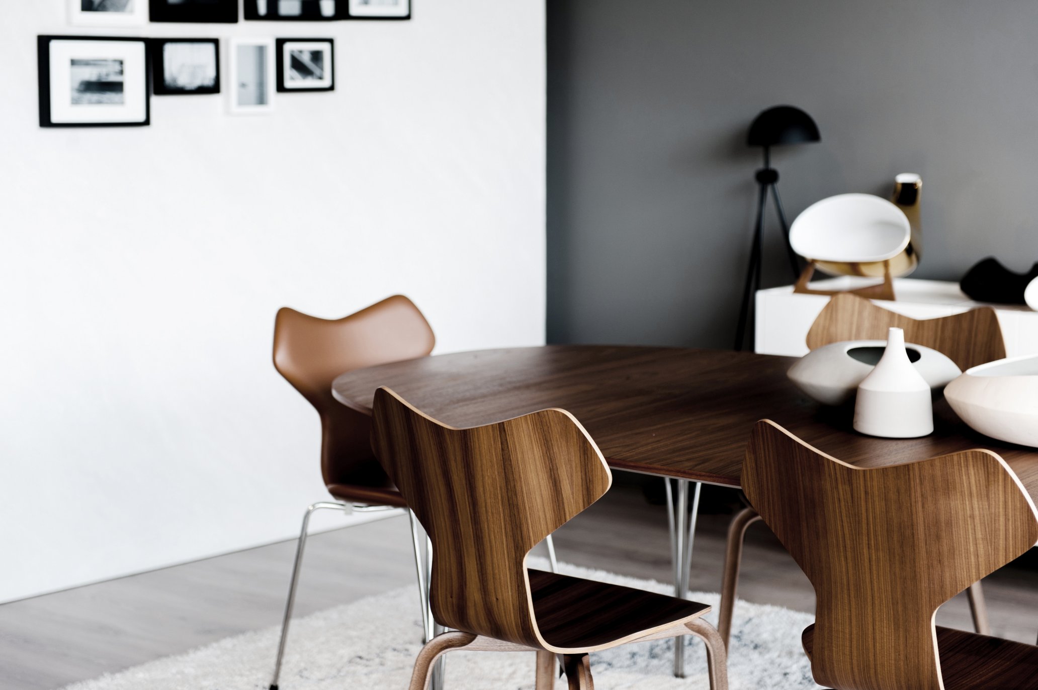 Esszimmer mit Grand Prix Stühlen von Fritz Hansen