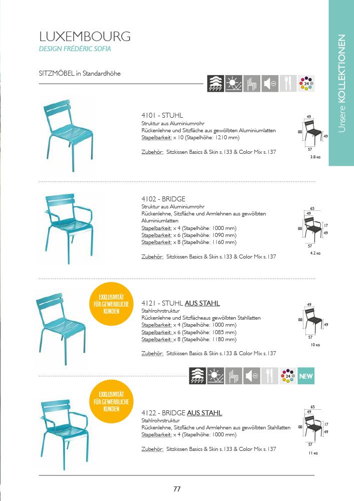 | Ausführungen | Auch als Luxembourg Gartentisch erhältlich |