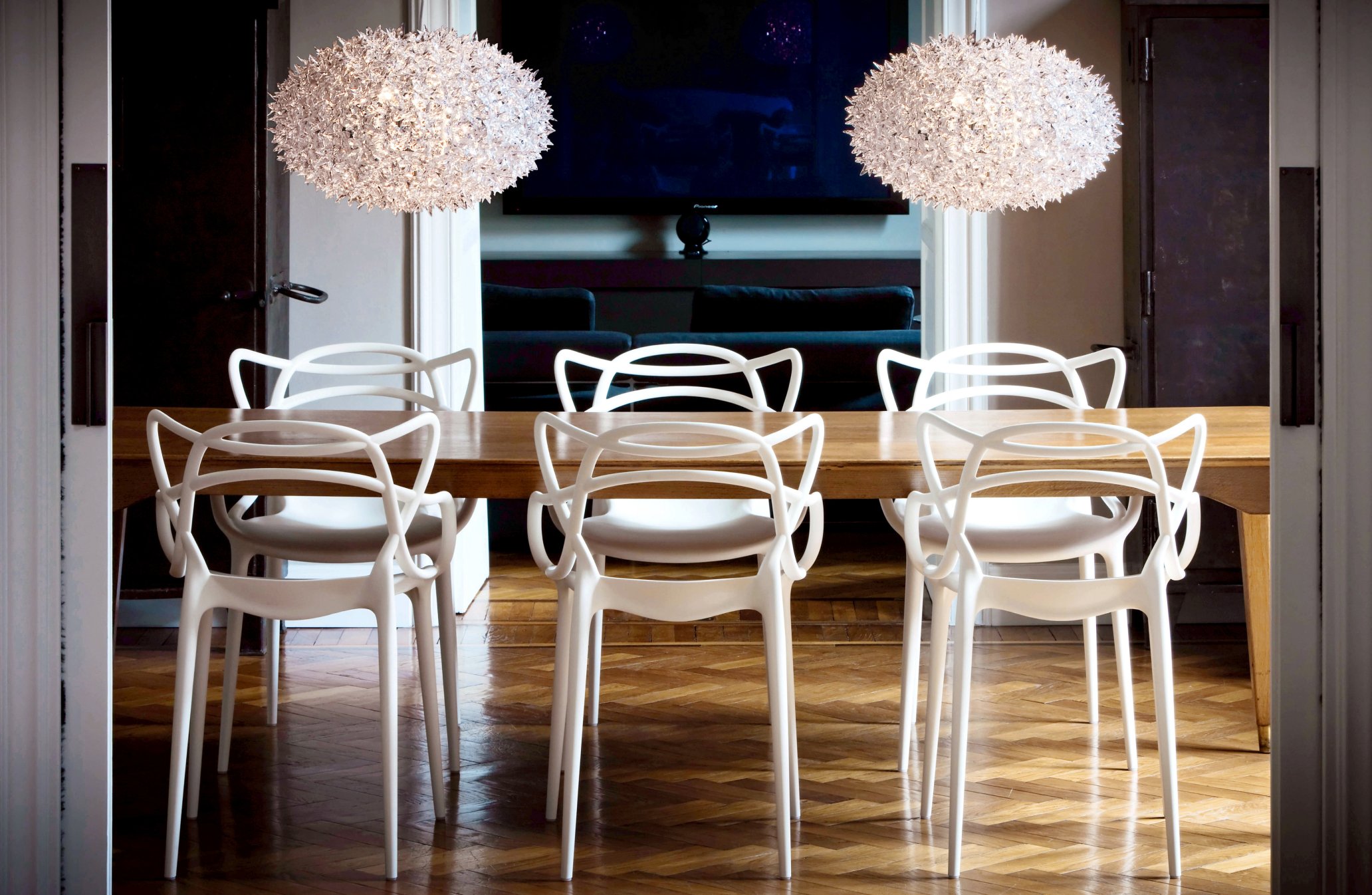 Zur Kartell Metallic Kollektion gehört auch der Kartell Masters Chair, einer von zahlreichen Kartell Stühlen, die aufgrund des Materials Kunststoff drinnen wie draußen eingesetzt werden können und deshalb auch als Gartenstuhl funktionieren.