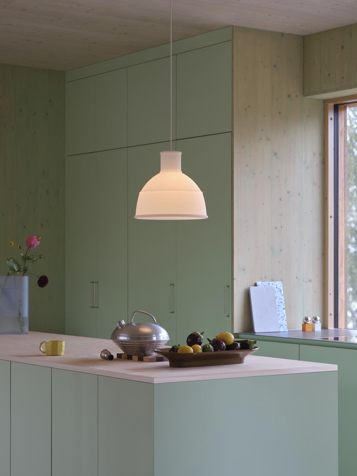 Jedes Material wird bei Muuto bewusst gewählt, um Haptik, visuelle Tiefe und Lichtwirkung zu optimieren. Von mundgeblasenem Glas über warmes Holz bis hin zu innovativen Polymeren – die Leuchten erzeugen sanftes, blendfreies Licht – charakteristisch für skandinavische Wohnräume. Sandgestrahlte Oberflächen, tiefgezogenes Aluminium oder matte Lackierungen formen das Licht und schaffen Atmosphären, die weit über reine Funktion hinausgeht.