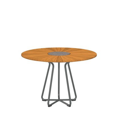 Der Circle Tisch von Houe bietet mit seinem Materialmix aus Metall, Bambus und Stein ein stimmiges Bild und Designer Henrik Pedersen bleibt seinem Anspruch an ein formschönes und gleichzeitig funktionales Outdoor Möbel treu: Das imposante Gestell lässt genügend Beinfreiheit und das Zentrum aus Granitstein bietet genügend Platz für das Barbeque.