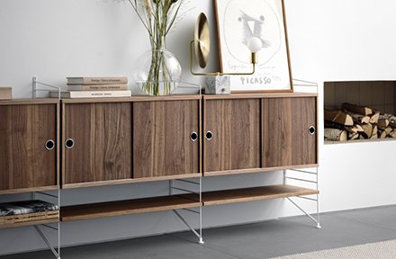 Das berühmte String Regal entstand 1949 im Rahmen eines Wettbewerbs, den ein schwedischer Buchverlag ausschrieb. Für die neue Leseleidenschaft der Schweden wurde ein Regal gesucht, das preisgünstig, unkompliziert zu verschicken und leicht zu montieren sein sollte. Der Architekt und Designer Nils "Nisse" Strinning und die Designerin Kajsa Strinning hatten schon lange über ein solches Regal sinniert und belegten mit ihrem Entwurf damals den ersten Platz. Auch heute noch ist der Klassiker des Skandinavischen Möbeldesigns weltweit im Einsatz. Anlässlich des 70. Jubiläums des Designklassikers erweiterte das Unternehmen sein Produktportfolio um einige Neuheiten. So ist das String Pocket in neuen Farbvarianten und das Regalsystem in einer Outdoor-Version erhältlich.