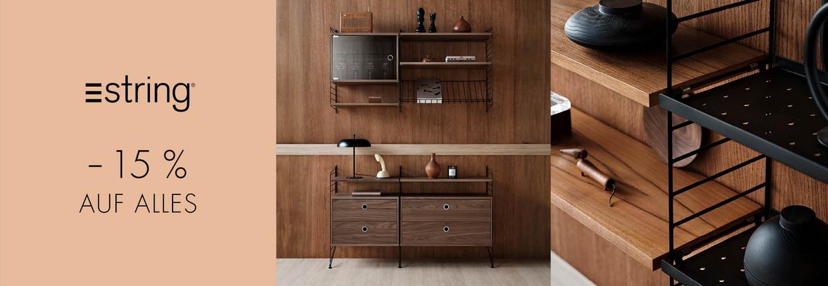 String Furniture schafft Ordnung! Bis zum 1. Dezember 2025 erhalten Sie 15 % Rabatt auf alle String Furniture Produkte, wie das String Pocket, die String System elements oder String Outdoor.