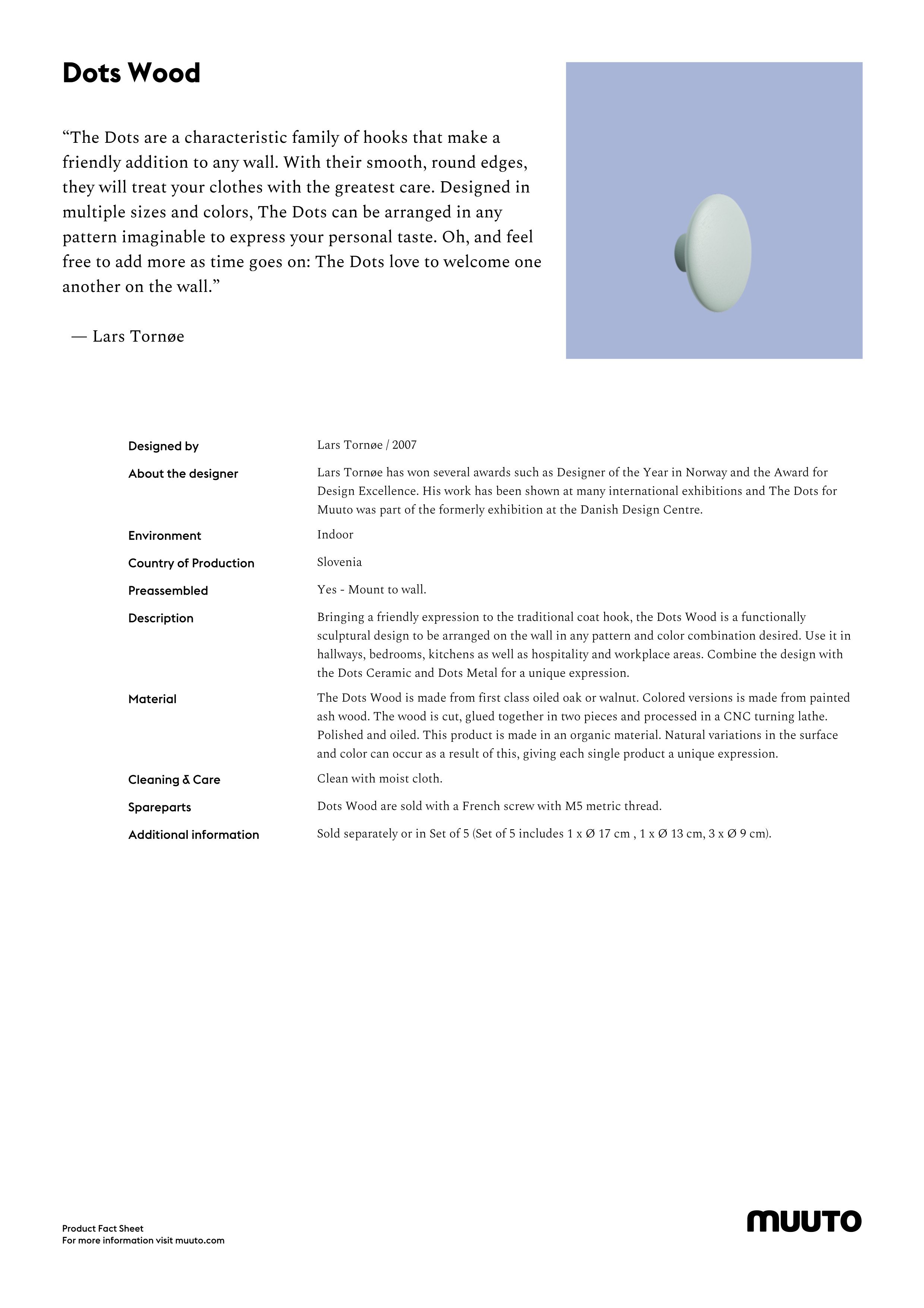 | Ausführungen | In 3 Größen und verschiedenen Farben erhältlich The Dots 5er-Set und The Dots Metal 5er-Set separat erhältlich |