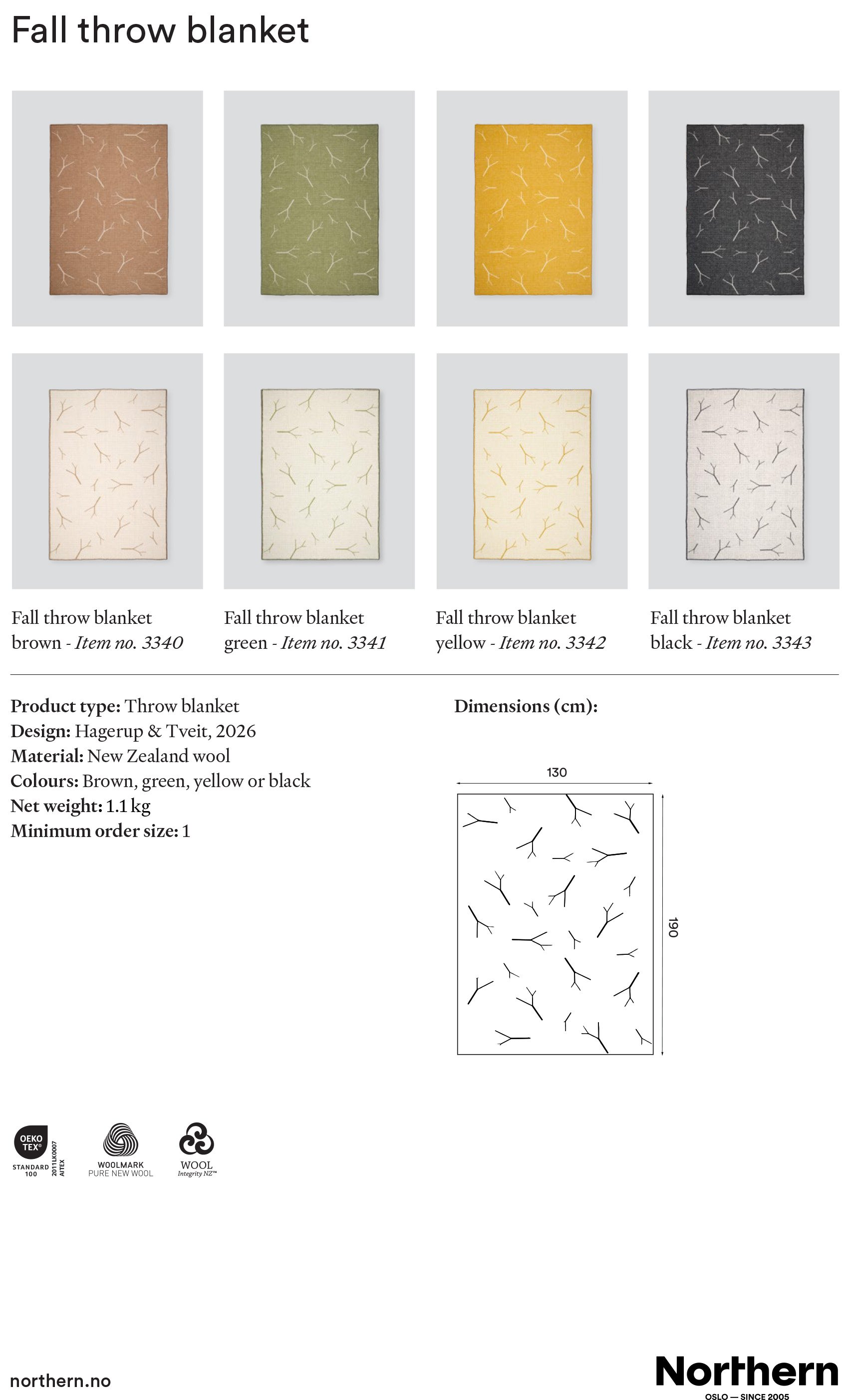 Die Fall Decke von Northern, entworfen vom Duo Hagerup & Tveit, besticht durch ihre hochwertige Verarbeitung aus 100 % neuseeländischer Wolle und ein zeitloses, grafisches Muster. Dank ihrer schweren Qualität und der weichen Haptik bietet sie eine erstklassige Wärmeisolierung bei gleichzeitig hoher Atmungsaktivität. Das minimalistische Design macht sie zur idealen Wahl für moderne Wohnbereiche, wo sie sowohl als stilvolles Akzentelement auf dem Sofa als auch als behaglicher Begleiter an kühlen Abenden dient.