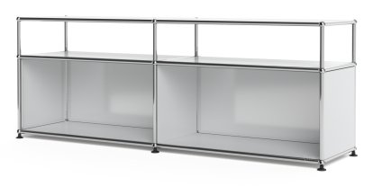 USM Haller Lowboard L mit Aufbau, individualisierbar, Lichtgrau RAL 7035, Offen, Ohne Kabeldurchlass