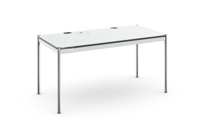 Der funktionalen Ausrichtung des USM Haller Möbelbausystems von Fritz Haller und Paul Schärer schließt sich auch der USM Haller Tisch Plus konsequent an. So verfügt der USM Haller Tisch Plus über 2 herausnehmbare Adaptionspunkte, die eine einfache und schnelle Montage verschiedener Accessoires, wie USB-Anschlüsse oder Lampenzapfen, und eine saubere Verkabelung ermöglichen. Das erfolgreiche USM Haller Möbelbausystem ist seit den 60er Jahren auf flexible und hochwertige Einrichtungslösungen im Büro- und Arbeitsbereich ausgerichtet und erfreut sich weltweit großer Beliebtheit.