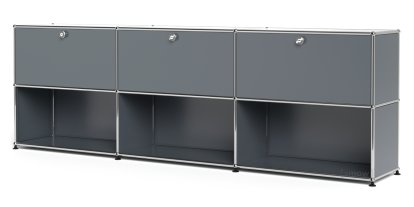 USM Haller Sideboard XL, individualisierbar, Anthrazitgrau RAL 7016, Offen, Mit 3 Klappen