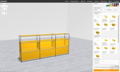 Im smow USM Konfigurator haben Sie die Möglichkeit, USM Haller Möbel ganz individuell nach Ihren Bedürfnissen zu planen und zu bestellen. Entscheiden Sie selbst, über wie viele Fächer, welche Maße und welche Farbe Ihr USM Regal verfügen soll und wählen Sie aus verschiedenen Zubehöroptionen. Der Preis und die Verfügbarkeit Ihrer Konfiguration wird Ihnen direkt angezeigt. Viele Konfigurationen können wir direkt für Sie bauen und versenden.
