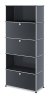 Die Geschichte des USM Aktenregals, des USM Haller Sideboards genau wie aller anderen USM Möbel beginnt Anfang der 1960er Jahre, als der Schweizer Betrieb USM in ein modernes Industrieunternehmen umstrukturiert werden soll. Der damalige Firmeninhaber, Paul Schärer, beauftragte damals den Architekten Fritz Haller mit der Planung neuer Betriebsanlagen. Nach Fertigstellung der Neubauten entwickelte Fritz Haller dann im Jahr 1963 das USM Möbelbausystem als Inneneinrichtung für den USM Büropavillon in Münsingen. Ursprünglich nur für den firmeneigenen Bedarf konzipiert, ging USM Haller sechs Jahre später, nach der Ausstattung der Pariser Rothschild Bank, in Serienproduktion. Das Besondere der USM Haller Regale ist heute wie damals die modulare Konzeption: aus gerade einmal drei Grundelementen können Möbel in beinahe allen erdenklichen Formen konstruiert werden. In die Grundstruktur aus verchromten Metallrohren, die mit ebenfalls verchromten Metallkugeln verbunden sind, werden Tablare aus Metall oder Glas eingesetzt. Schließlich kann das Möbel mit verschiedenem Zubehör, wie Türen, Rollen, Schlössern und Zwischentablaren, ausgestattet werden. Das individuell konfigurierbare USM Aktenregal mit Klappen/Auszügen verfügt über fünf Fächer, die wahlweise mit Klappen oder Auszügen ausgestattet werden können.