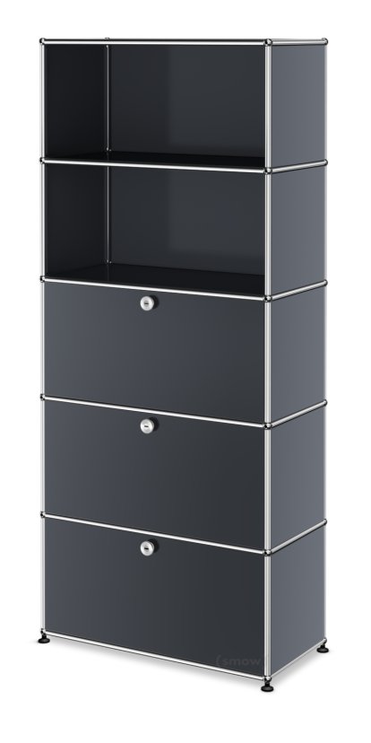 USM Haller Aktenregal M, individualisierbar, Anthrazitgrau RAL 7016, Offen, Mit Klappe, Mit Klappe, Mit Auszug