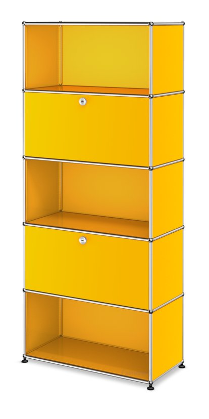USM Haller Aktenregal M, individualisierbar, Goldgelb RAL 1004, Offen, Mit Klappe, Mit Klappe, Mit Klappe