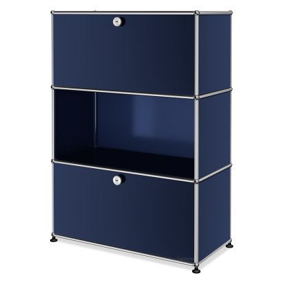 USM Haller Highboard M, individualisierbar, Stahlblau RAL 5011, Offen, Mit Klappe, Mit Klappe