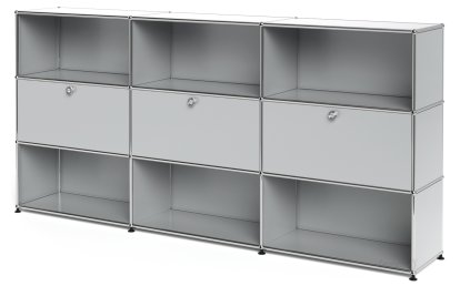 USM Haller Highboard XL, individualisierbar, Lichtgrau RAL 7035, Offen, Mit 3 Klappen, Mit 3 Klappen