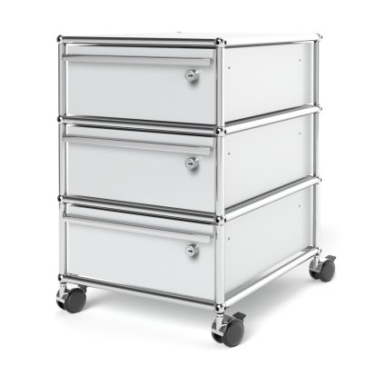 USM Haller Rollcontainer mit 3 Schubladen Typ 1 (mit Gegengewicht), Alle Fächer mit Schloss, Lichtgrau RAL 7035