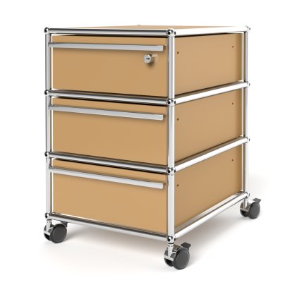 USM Haller Rollcontainer mit 3 Schubladen Typ 1 (mit Gegengewicht), Oberste Schublade mit Schloss, USM beige