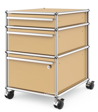 USM Haller Rollcontainer mit 3 Schubladen Typ 2 (mit Gegengewicht), Unterste Schublade mit Schloss, USM beige