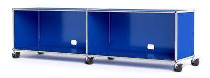 USM Haller TV-/HiFi-Lowboard, individualisierbar, Enzianblau RAL 5010, Mit 2 Klappen, Mit Kabeldurchlass unten mittig
